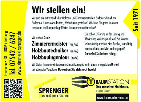 8. April 2024Zimmermeister, Holztechniker o. Bauingenieur (m/w/d)